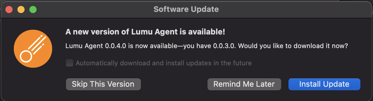 You can also check for updates and see the agent version using the macOS settings option, as in the following image: