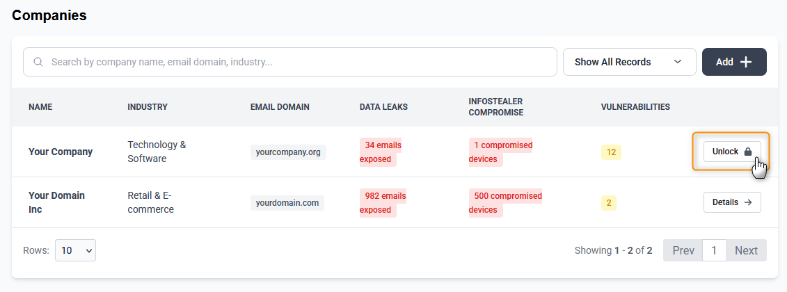 By leveraging the Lumu Discover module of potential prospects, you can access valuable intelligence to evaluate and qualify potential prospects. This information can be shared with your sales team for outreach. Additionally, Lumu Discover free reports serve as a powerful tool to engage potential customers, providing concrete evidence of their vulnerabilities and security needs.