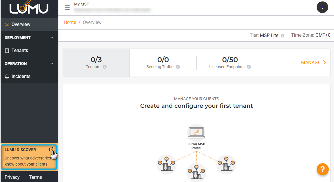 This is how you can access Lumu Discover from the Lumu for MSP Portal.