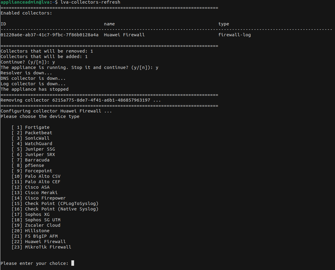 Go to the Lumu Virtual Appliance and refresh the VA Collectors settings by running the command lumu-appliance collectors refresh. If the appliance is running, it must be stopped in order to continue the setup process.