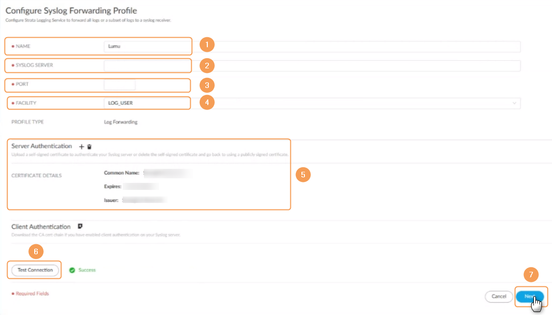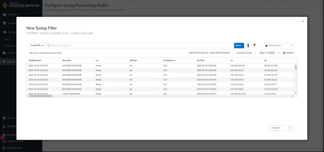 These are the general steps you should follow to configure a Syslog server destination on Strata Logging Service to send Firewall metadata to Lumu: