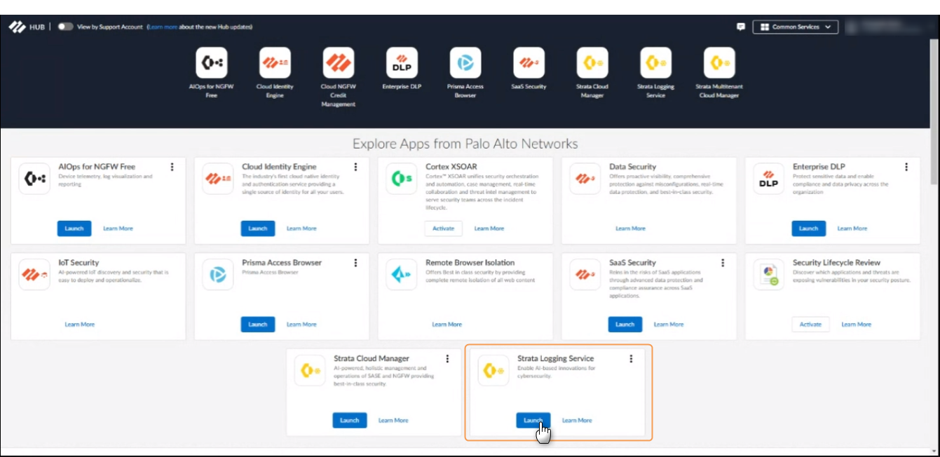 1. Sign in to the application hub and select the Strata Logging Service,.