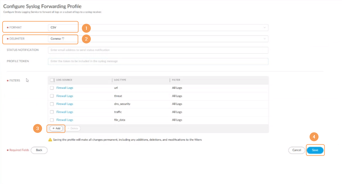 You must configure your Strata Logging Service to send Palo Alto Prisma Access logs to the Virtual Appliance. This requires that you forward logs to a Syslog Server. Follow these steps to do it.