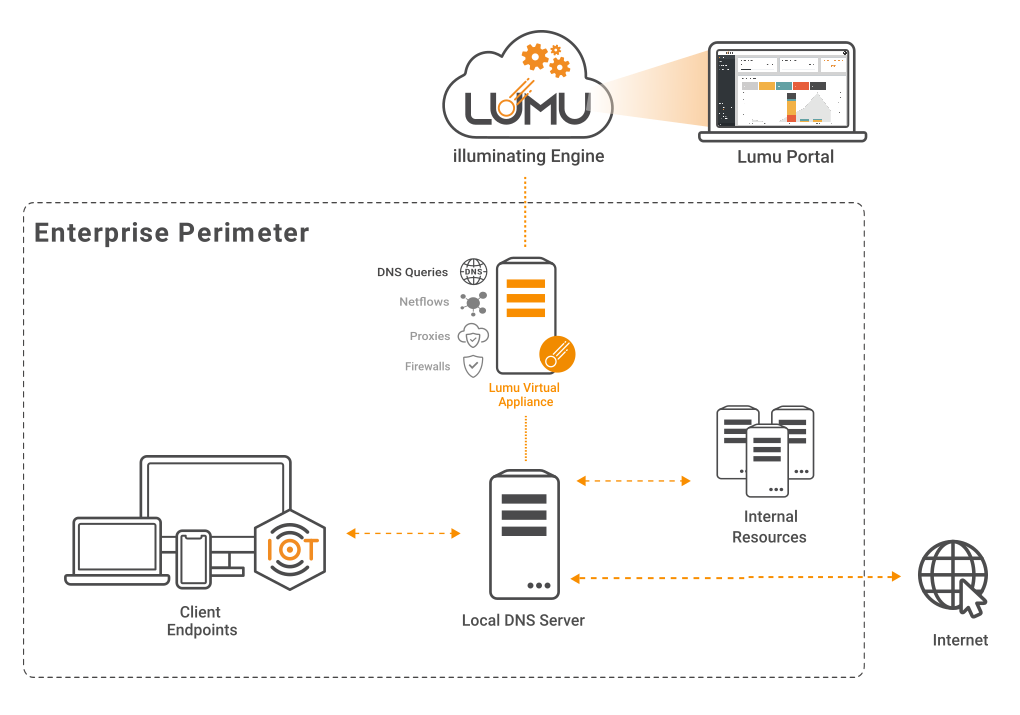 of your entire enterprise and forward it to the Lumu cloud with the lowest impact on the network operation.