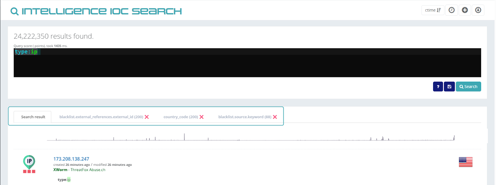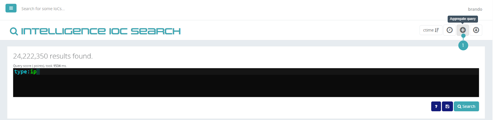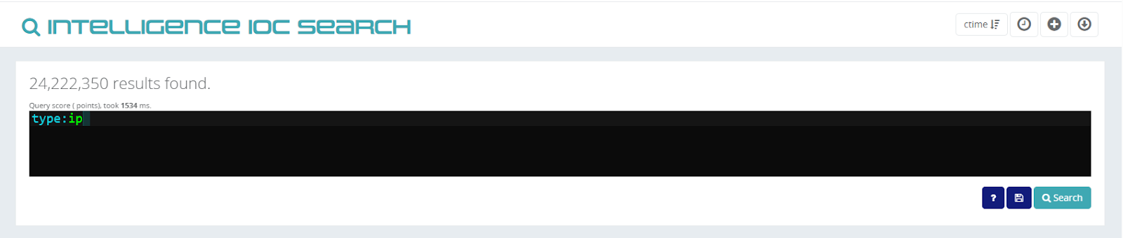 1. Run a simple search that filters a high number of IoC, for example, type:ip.