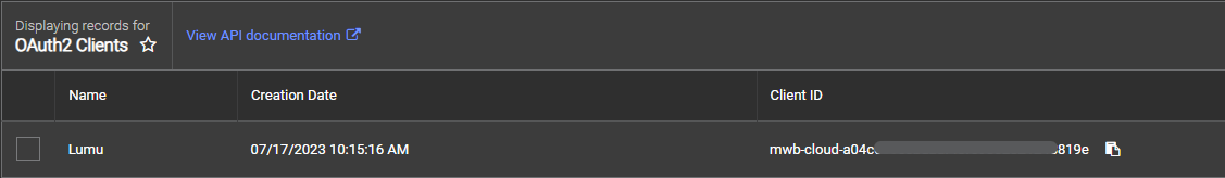 Click on the Save button. The OAuth client window will display the required details from Malwarebytes for setting up the integration.