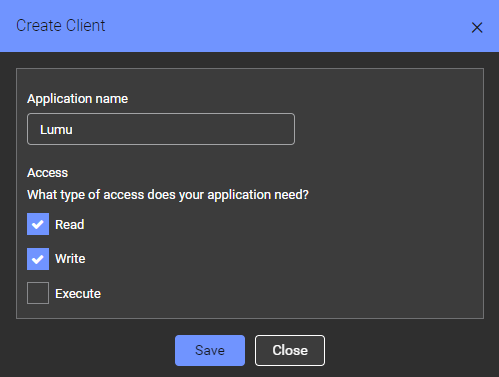 To create a new API client, log in to your Malwarebytes Web console and click on the Integrate button in the left navigation base. Finally, click on the Add button. In the Create Client windows, make sure you mark the Read and Write accesses.