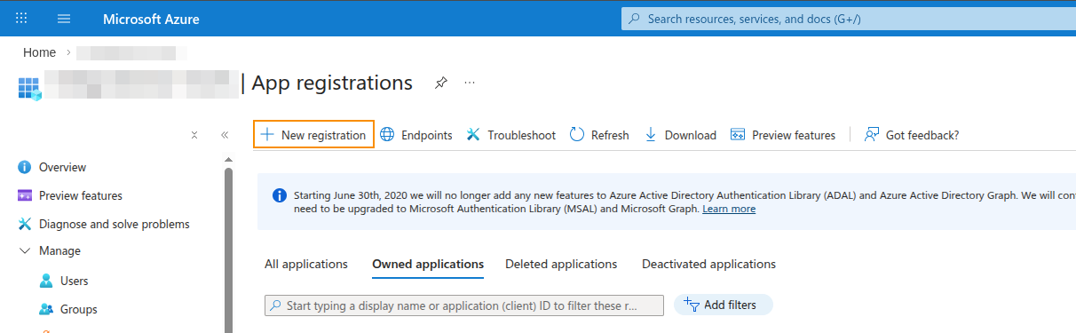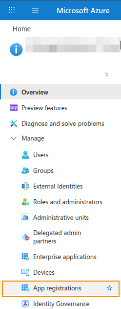 2. Select App registrations under the Manage section on the left navigation bar.