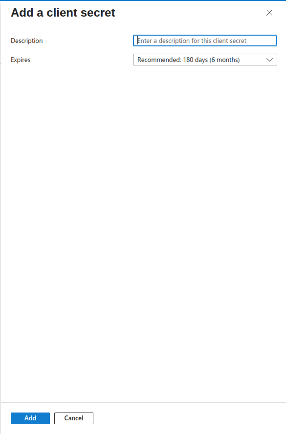3. Fill in the Add a client secret form that popped up to the right.