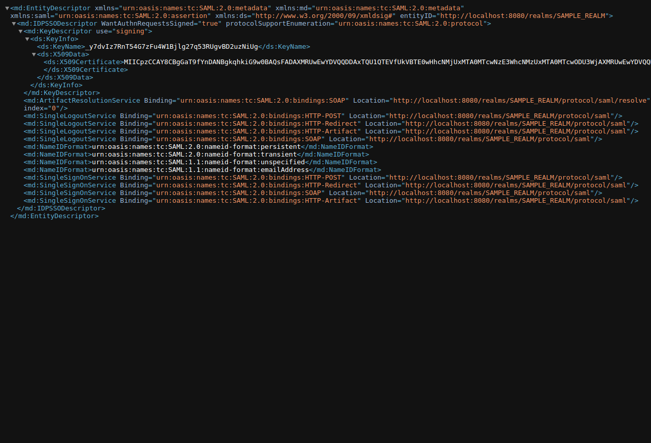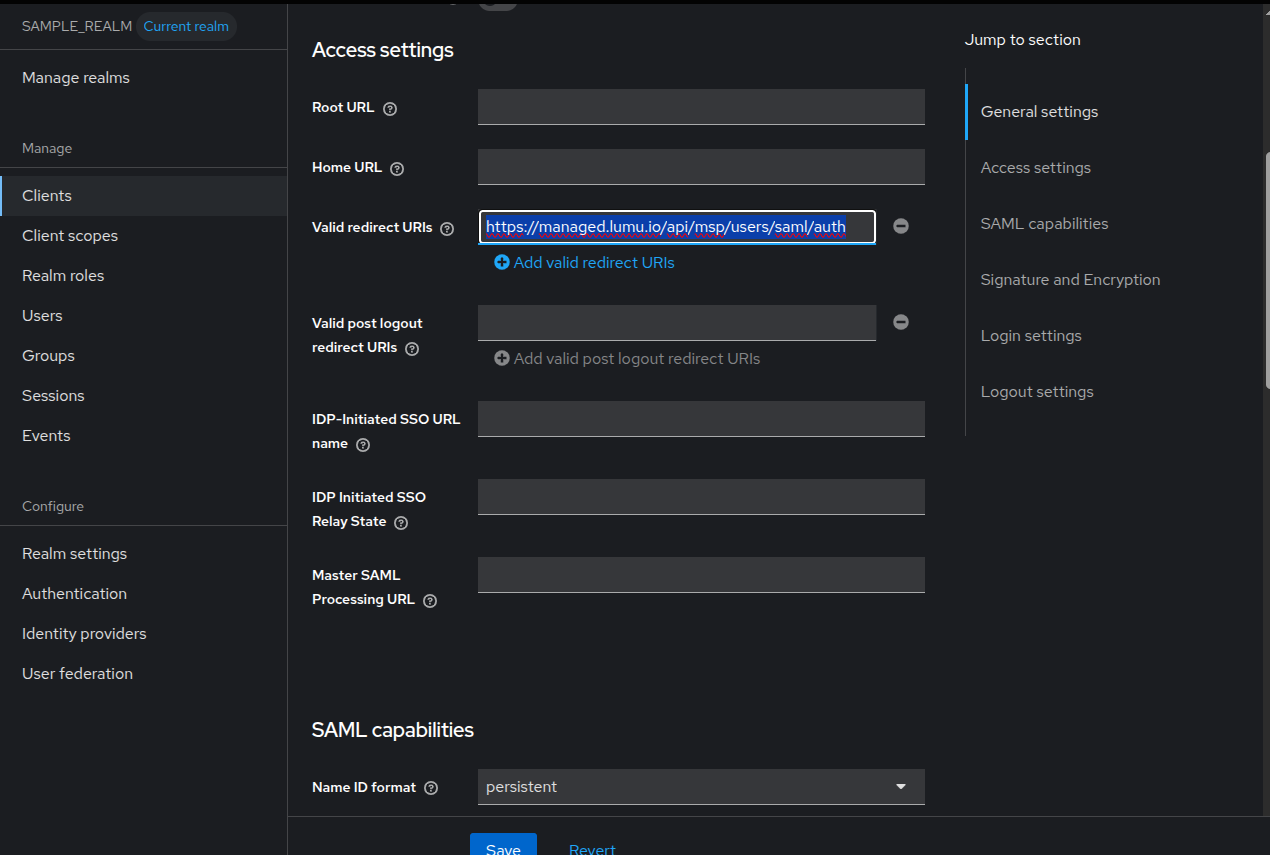 9. Finally, share the .xml file you saved in step 2 with Lumu Support. They will complete the setup and configuration on their end. Once the SSO implementation is complete, Lumu Portal users will be able to log in using Keycloak.