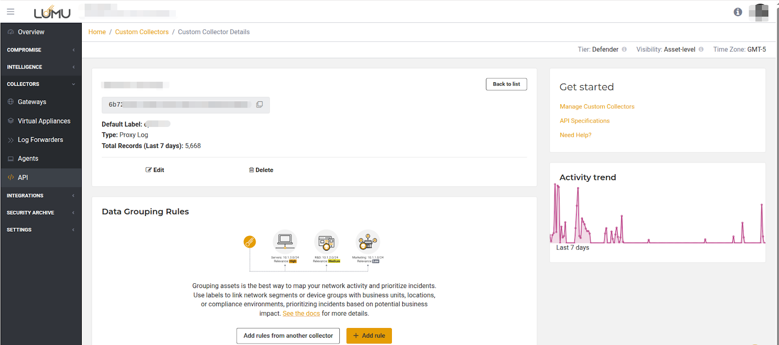 To collect the Lumu Custom Collector key, please refer to the Collector ID section of the Custom Collector API document.