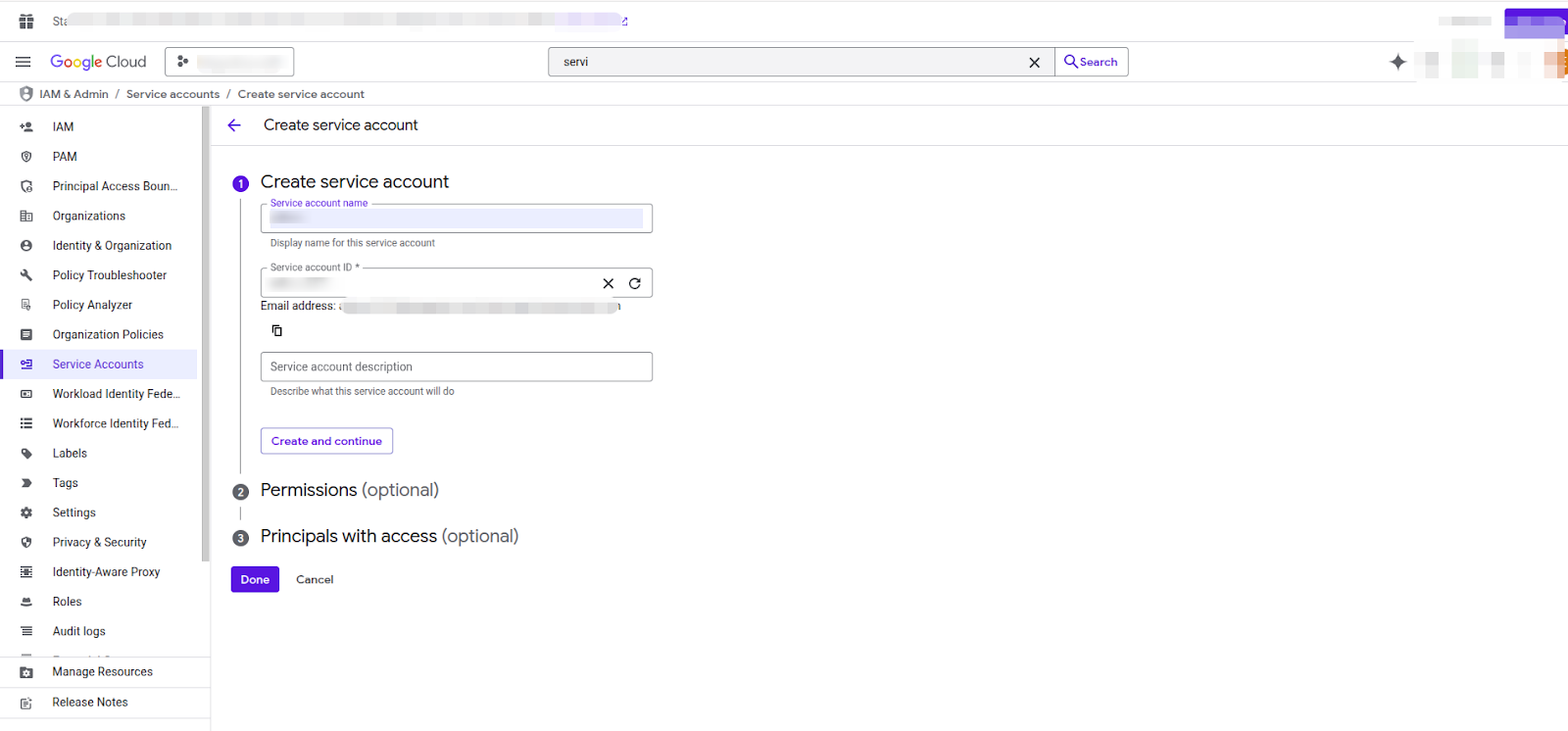 Within the GCP console go to IAM > Service Accounts and create a new service account.