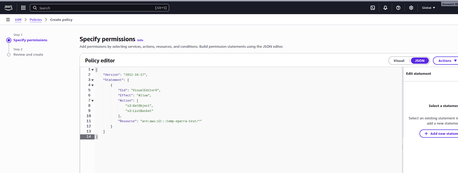 "Resource": "arn:aws:s3:::temp-eparra-test"
