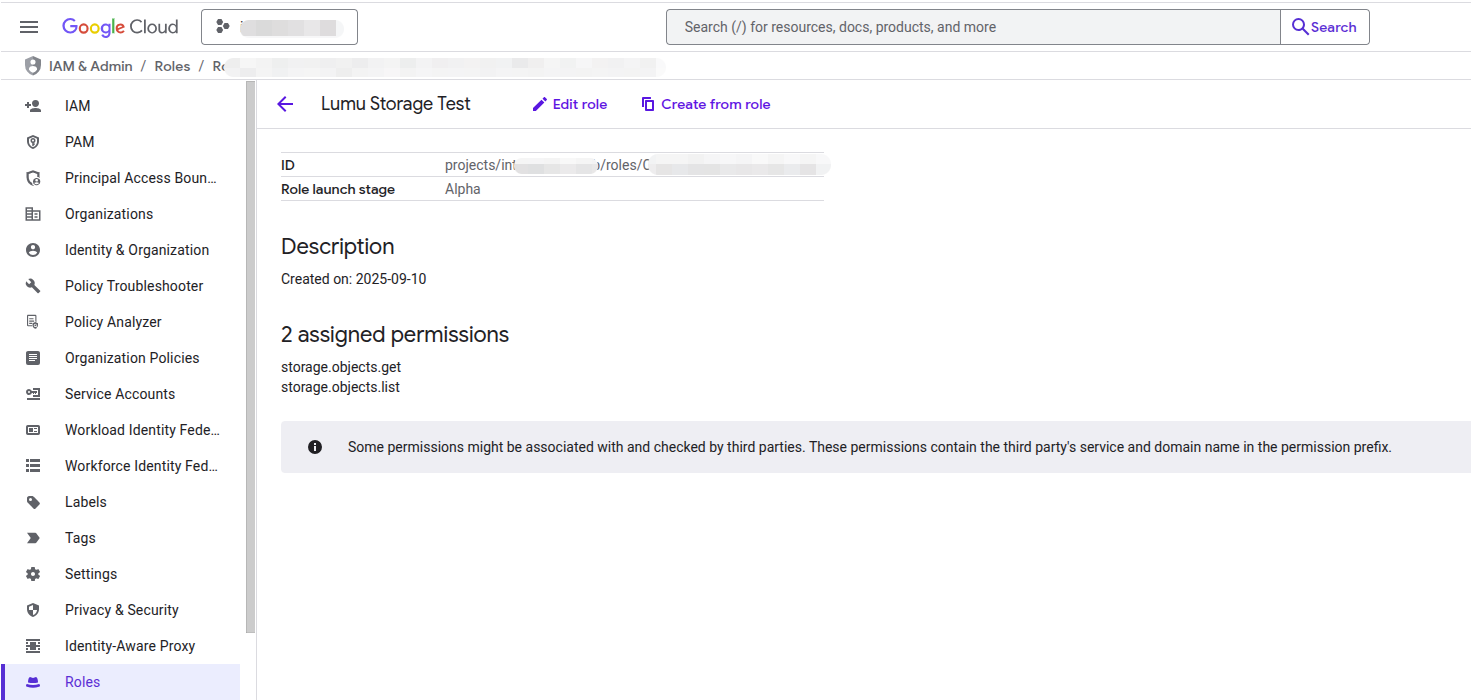 storage.objects.getandstorage.objects.listpermissions as shown below.Create a Service Account