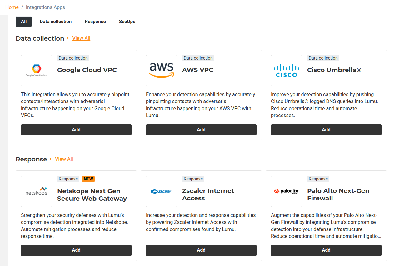 1. Log in to your Lumu account through the Lumu Portal and navigate to the available apps screen.