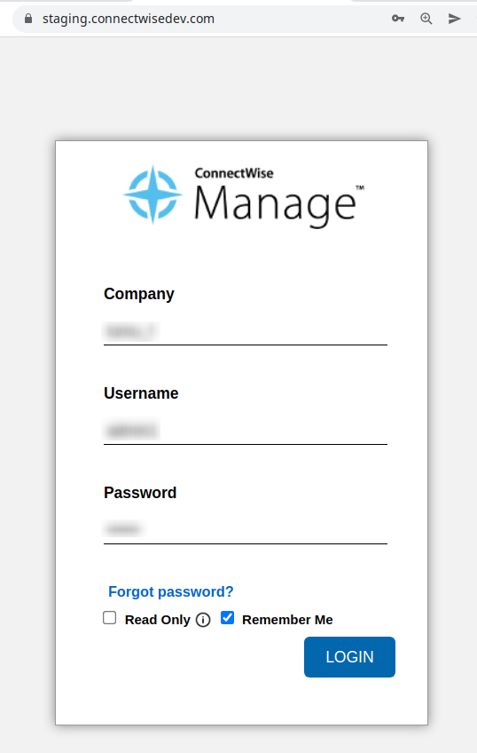 During the first part of this procedure, we will be configuring ConnectWise PSA to obtain the information required to create the integration. To begin with, log in to your ConnectWise PSA portal.