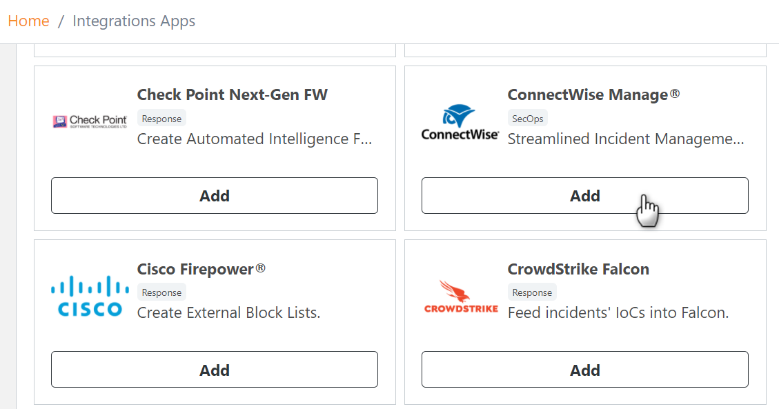 2. Locate the ConnectWise PSA integration in the available apps area and click to add, then click to view details.