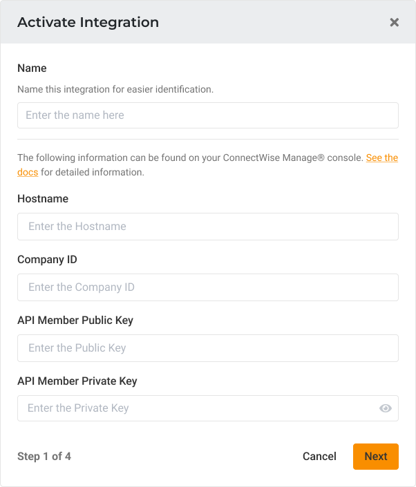 The credentials of the API Member the integration will use to interact with ConnectWise PSA |