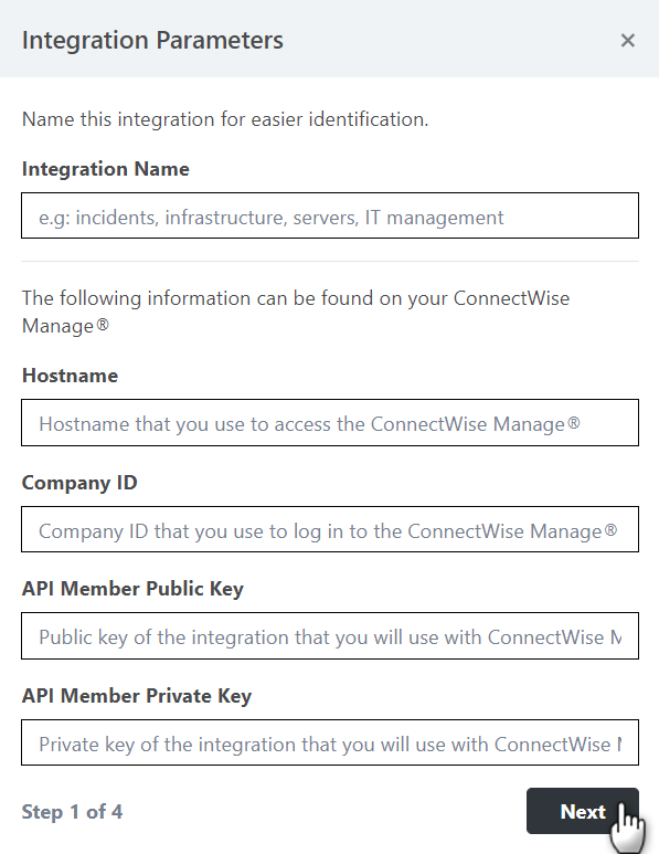 Hostname is the hostname you use to login into the ConnectWise PSA portal - e.g. staging.connectwisedev.com