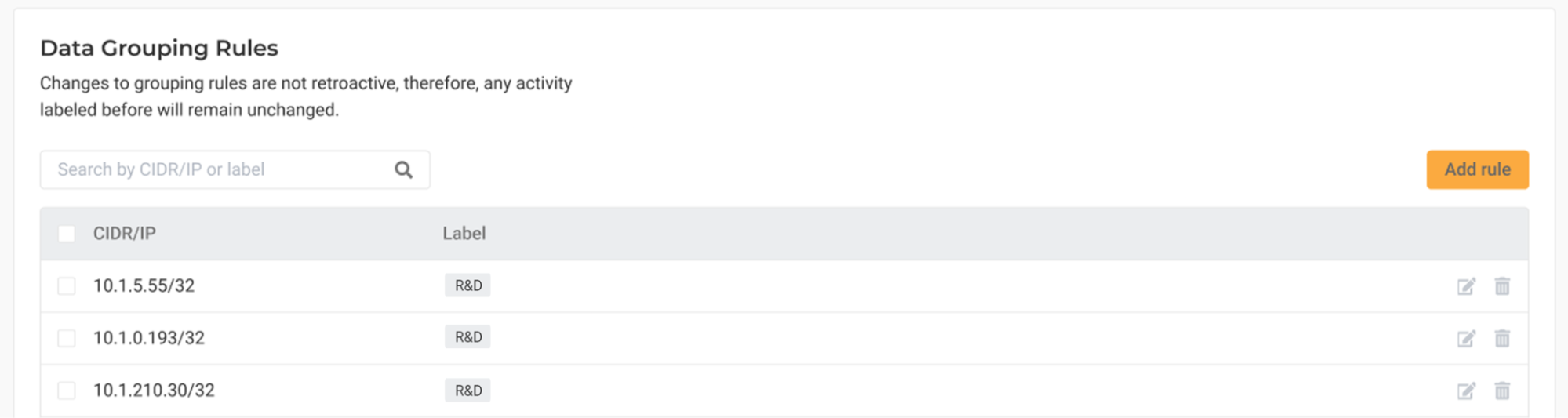Grouping Rules are powerful tools to organize and streamline the traffic received by your collectors by making full use of Lumu’s Labels. Consult the relevant article on our technical documentation to learn more about Grouping Rules.