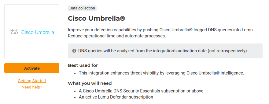 Cisco Umbrella Out-of-the-Box Data Collection Integration