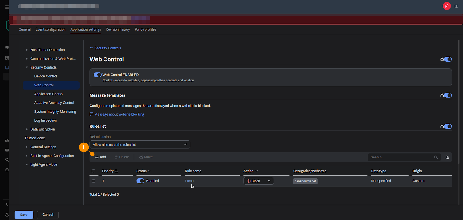 A Windows policy may already exist, so you only need to add a Web Rule to it. If not, create a Windows policy and name its Web Rule for the integration.