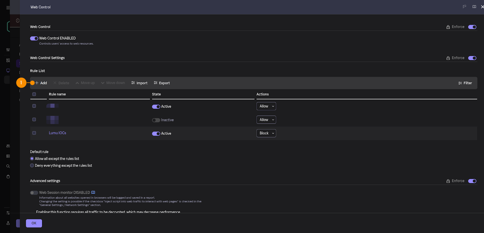 You will see new network indicators in your KSC web rule policy as a result of the integration.