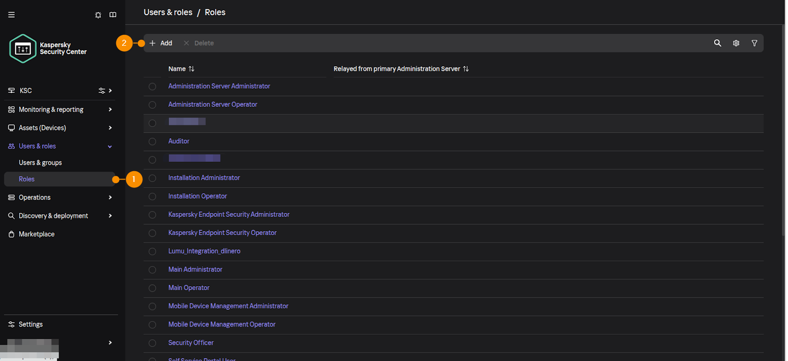 1. Click on Roles (1) under the User & roles section. Then, click on + Add (2)