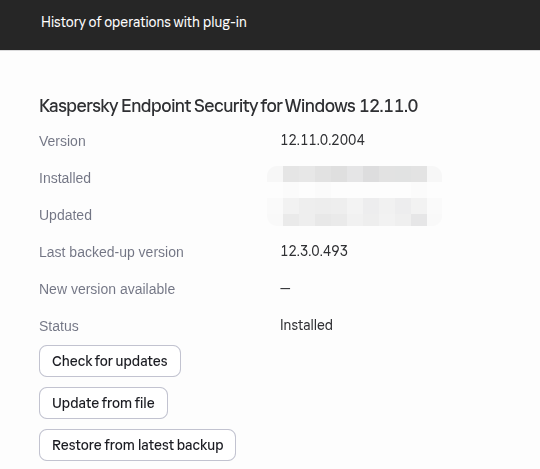 The integration with Kaspersky Security Center Web Console supports Kaspersky Endpoint Security for Windows versions 12.3.0 and 12.11.0.