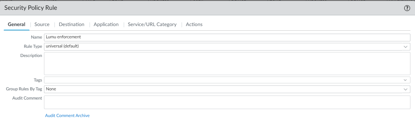 4. After creating the External Dynamic list, you must use it inside a security policy created under the URL filtering profile. The following is an example of said policy: