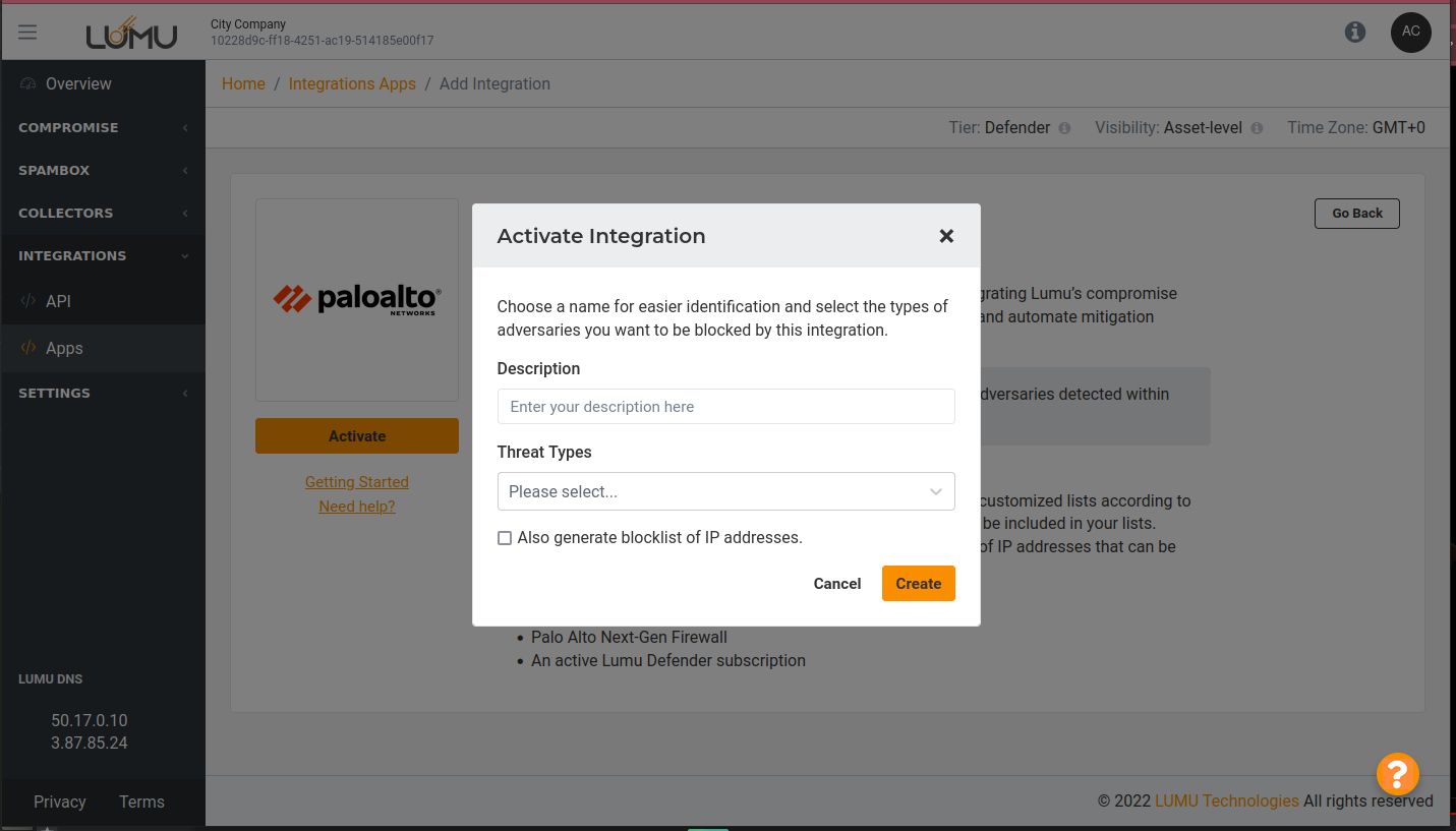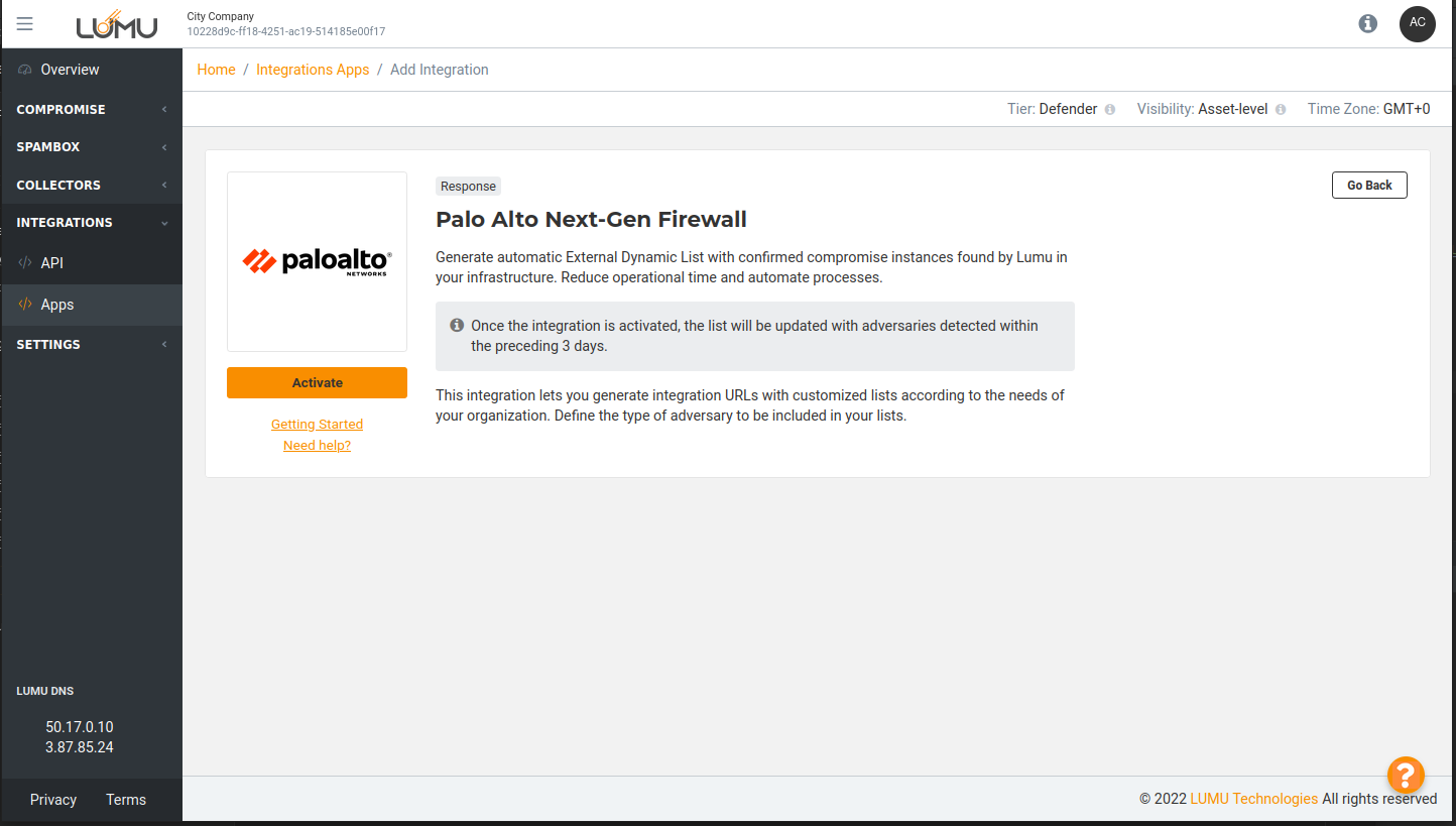 Out-of-the-box Integrations are part of Lumu Defender. This tier was built to help organizations orchestrate and automate defense against confirmed compromise instances. To know more about Lumu Defender,