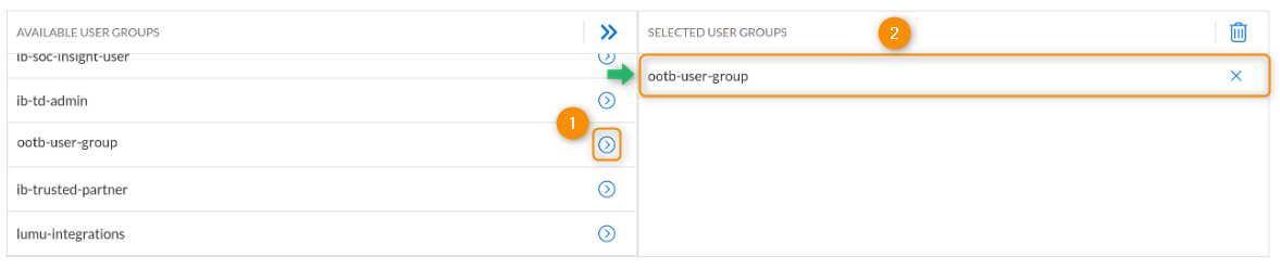 9. This is the point where you must assign a user group to the user. Click on the blue arrow icon next to the group you wish to select, this will move it to the Selected User Groups field.