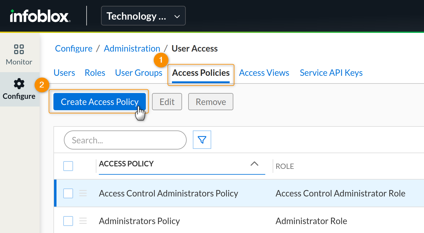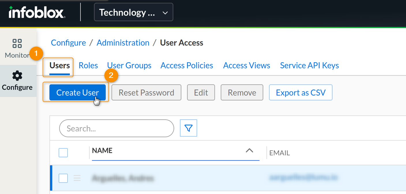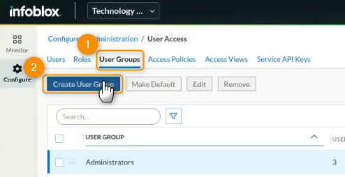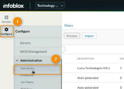2. Then, head to the User Access section of the Infoblox Portal using the Configure side panel.