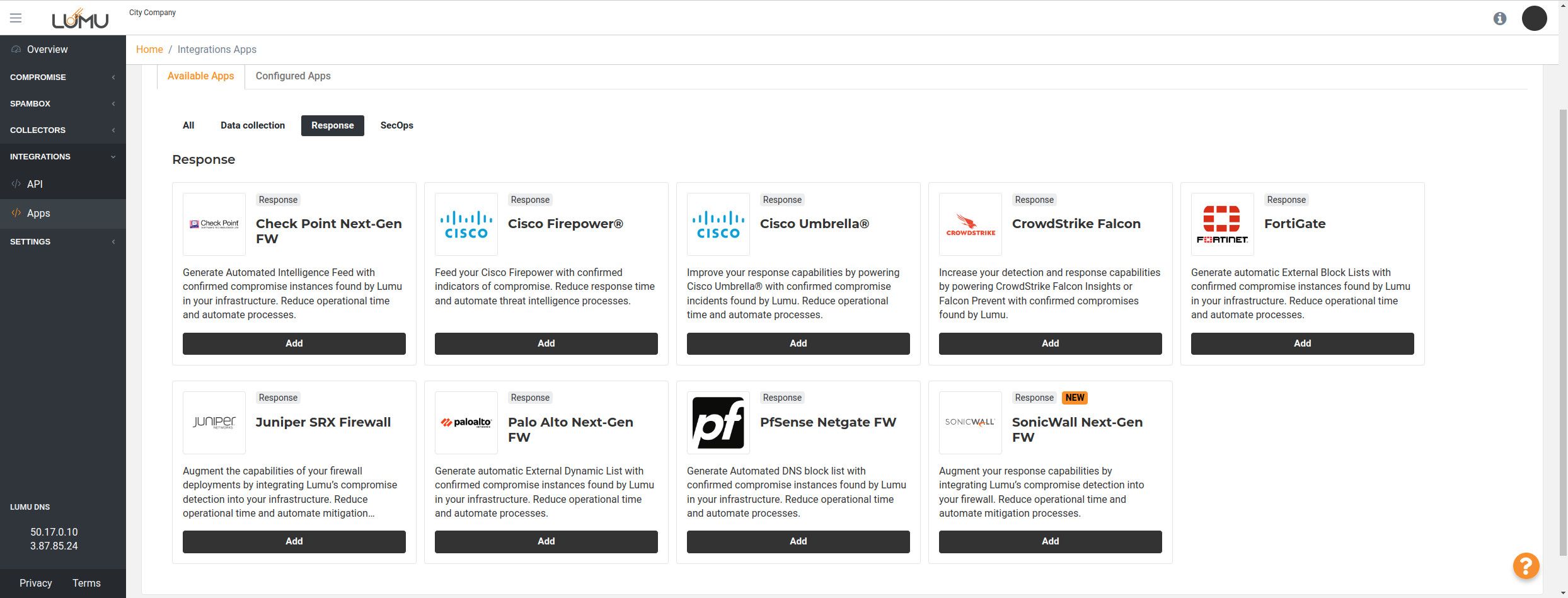 1. Log into your Lumu account through the Lumu Portal and navigate to the integrations screen.