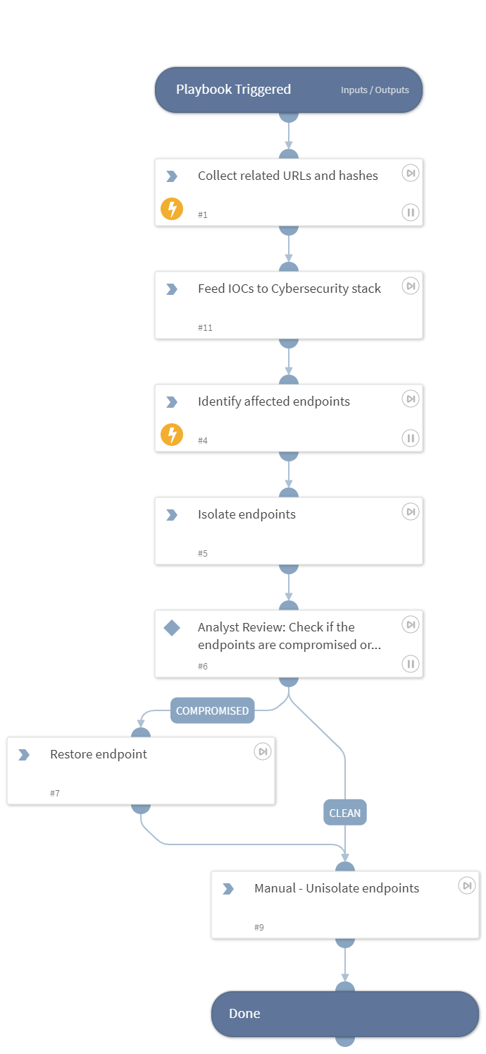 You can use your newly configured Lumu instance in conjunction with other packs to define playbooks. The main goal of the playbooks is to aid your Cybersecurity analysts to act and respond in an efficient manner to security events and incidents.