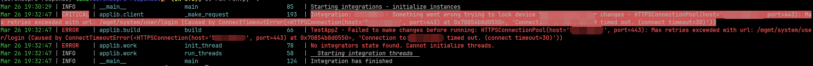 We strongly recommend correcting any credential errors before attempting to start the integration using the start command.