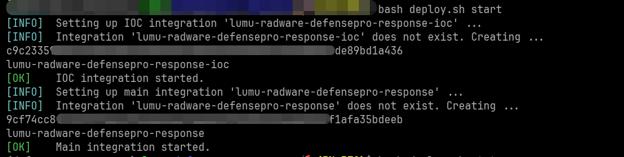 If you have run this process before, you may receive warning messages about the existence of running components. To ensure you have the latest version of the integration, we recommend removing the existing integration containers before entering the start command.