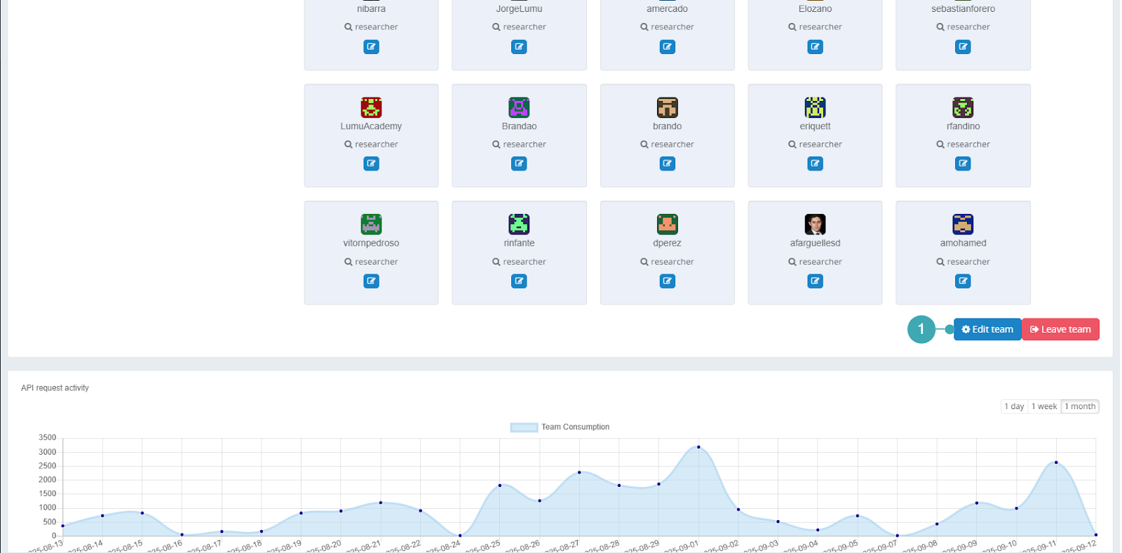 1. Access the Team (1) section from the left navigation menu.