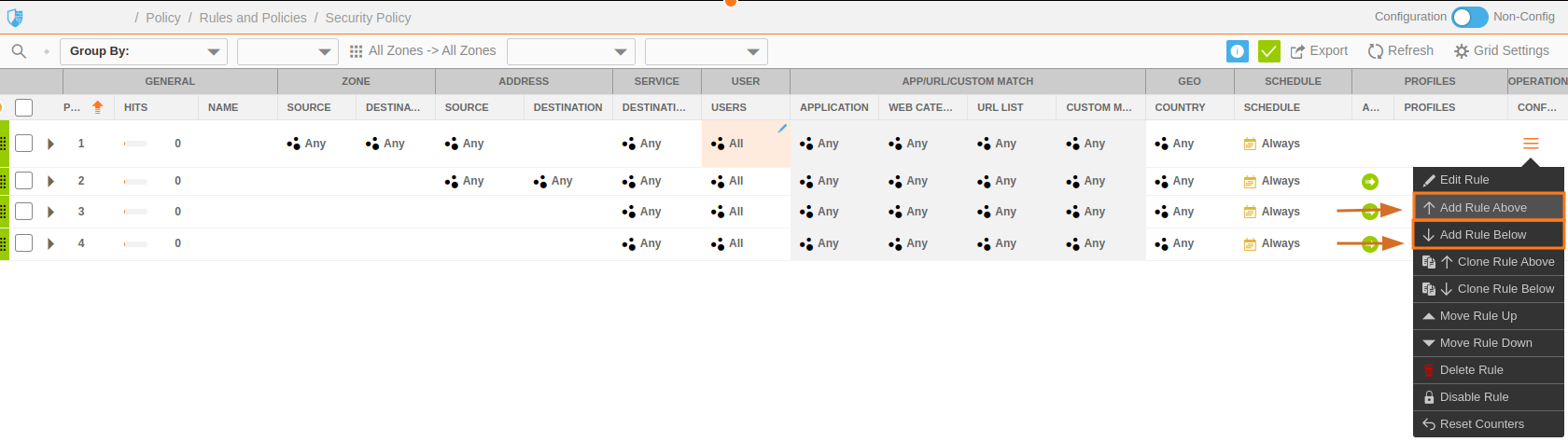You can add a new Rule with the Dynamic External Address Group, either above or below, depending on how you want to set up the network traffic. If you are adding a new one, you will need to follow the next steps:
