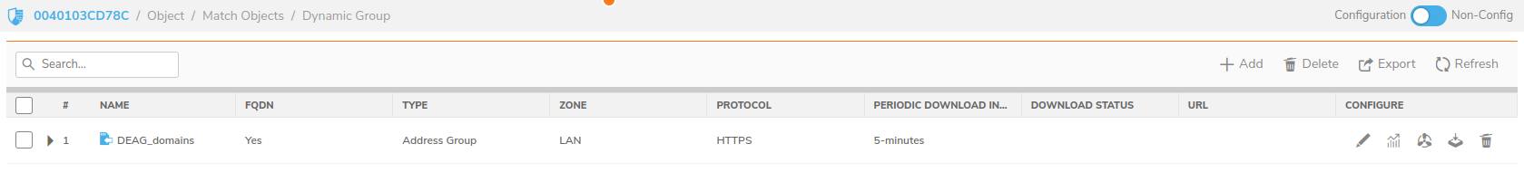 Once the integration is activated, the Dynamic External Objects/Groups section will be updated with confirmed compromises found by Lumu within the preceding 3 days.