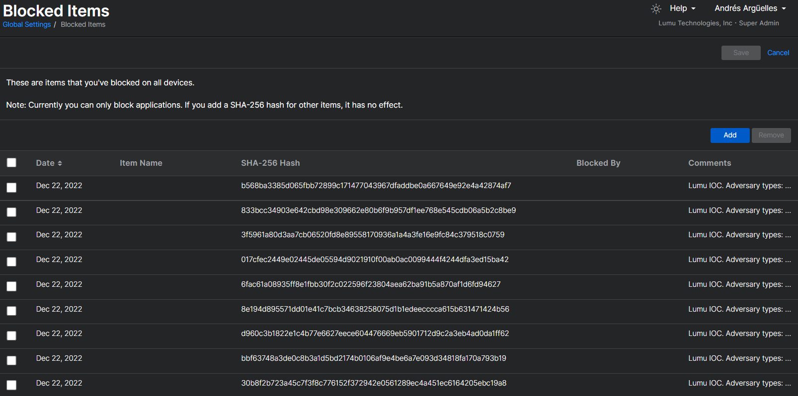 - python lumu-sophos.py --clientID <sophos_client_id> --clientSecret <sophos_client_secret> --company-key <lumu-company-key> --sha_unlocked True --web_unlocked True