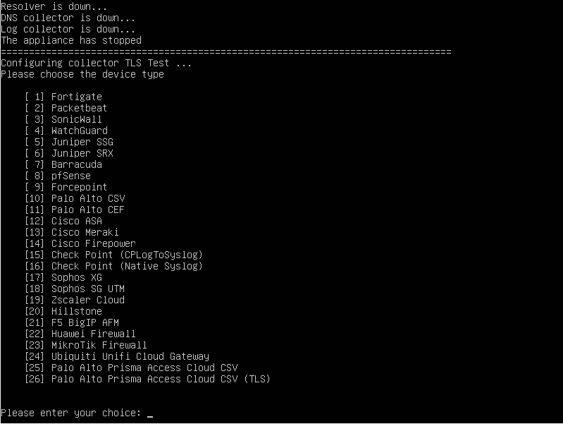 Go to the Lumu Virtual Appliance and refresh the VA Collectors settings by running the command lumu-appliance collectors refresh. If the appliance is running, it must be stopped in order to continue the setup process.