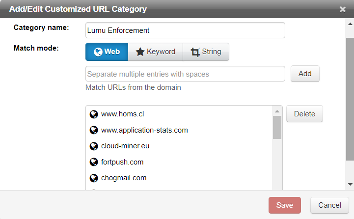Define the name you want to use for the Lumu Customized URL category. Make sure this name is unique and it is not used in another category.