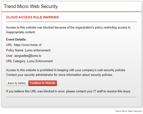 | --user USERNAME--username USERNAME | Trend Micro Web Security user. |