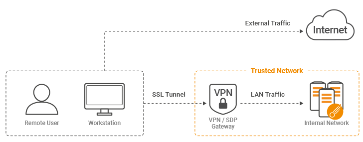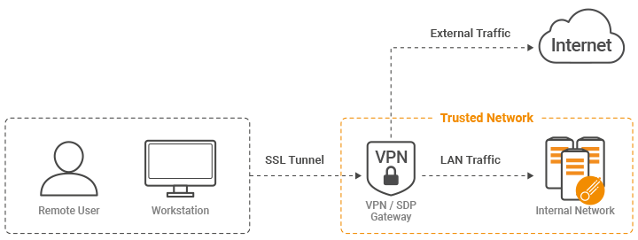 Enterprises can incorporate remote workers into their network of defenses by using VPN/SDP Gateways. These are devices or software which are developed for extending LAN Networks to the Internet (in most cases) through a safe and private channel.