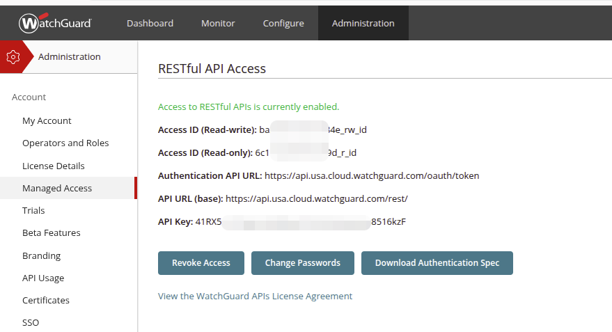1. Go to Administration>Managed Access and click on Enable API Access.