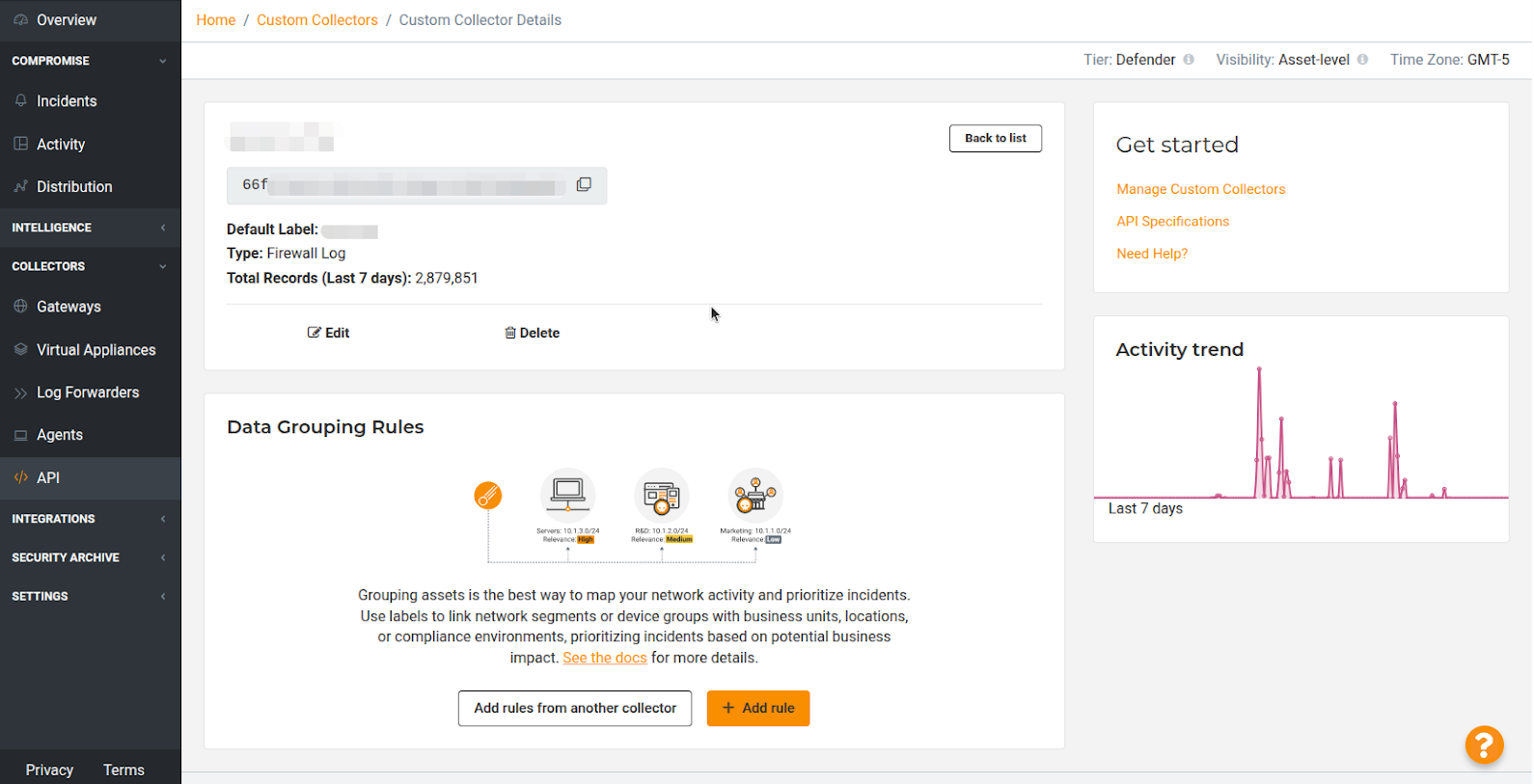 After you configure the integration, you will see the processed events in the custom collector created in Lumu Portal. Lumu will process events from 10 minutes previous to the integration activation time.