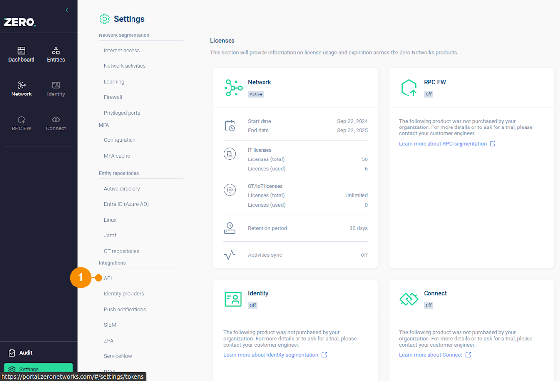 To set up the integration, you must prepare your Zero Networks instance to communicate with Lumu by generating an API token.